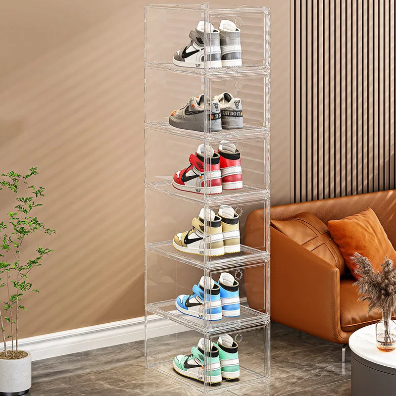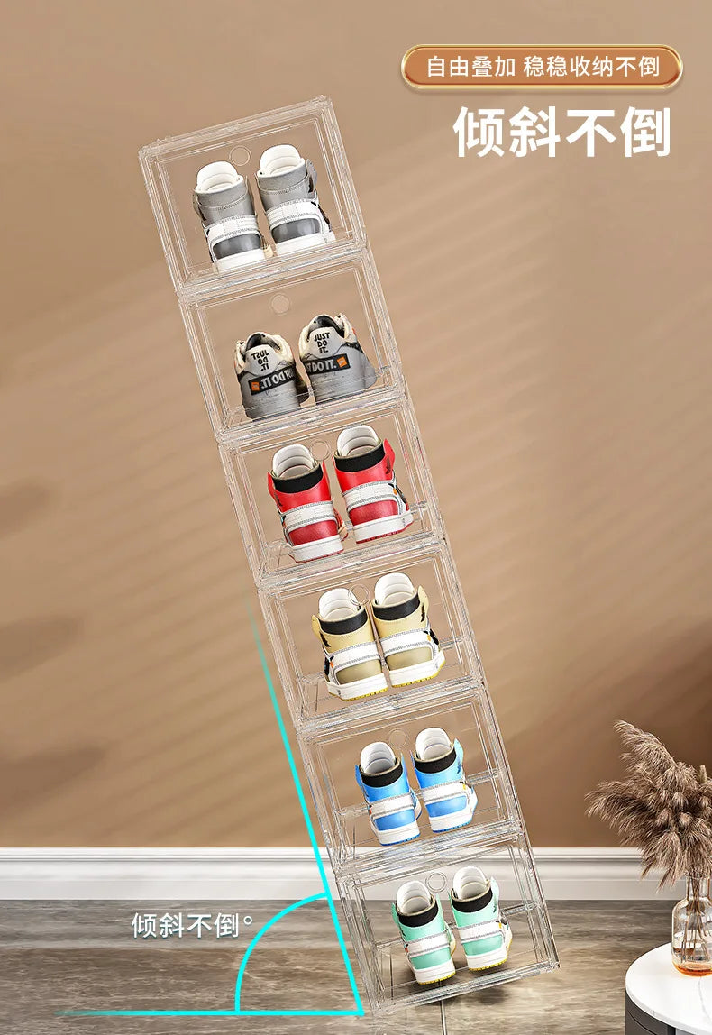 Keep your sneakers and shoes perfectly organized with this Thickened Transparent Shoe Box. Featuring a magnetic closure and a stackable design, this multi-layer shoe organizer is the ideal solution for displaying and storing your footwear collection, particularly for AJ sneakers. Its durable, clear plastic construction ensures easy visibility, while the magnetic lid keeps dust and dirt out, ensuring your shoes remain in pristine condition.